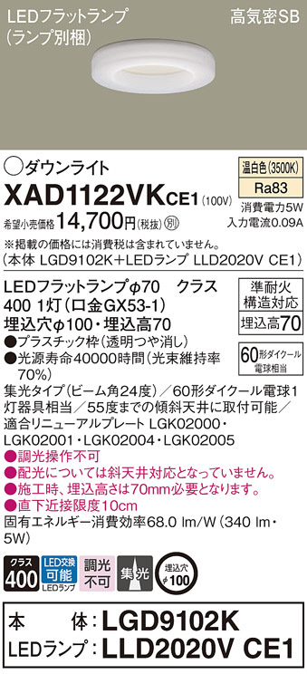 Panasonic ¥À¥¦¥ó¥é¥¤¥È XAD1122VKCE1