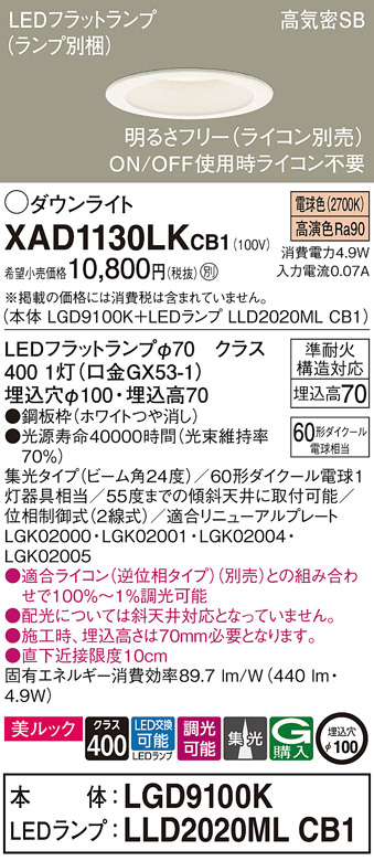 Panasonic ¥À¥¦¥ó¥é¥¤¥È XAD1130LKCB1