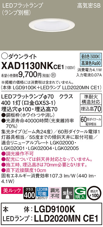 Panasonic ¥À¥¦¥ó¥é¥¤¥È XAD1130NKCE1