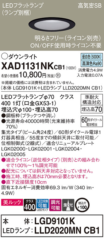 Panasonic ¥À¥¦¥ó¥é¥¤¥È XAD1131NKCB1