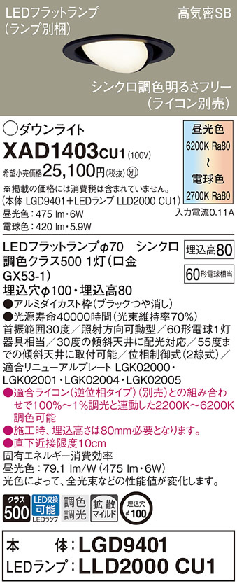 Panasonic ¥À¥¦¥ó¥é¥¤¥È XAD1403CU1