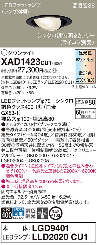Panasonic ¥À¥¦¥ó¥é¥¤¥È XAD1423CU1