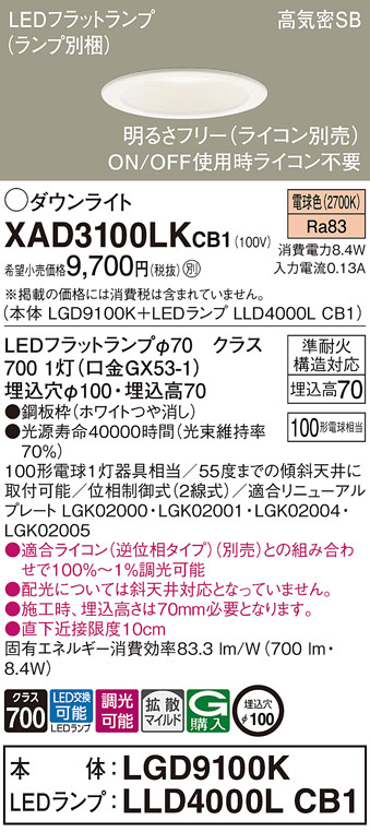 Panasonic ¥À¥¦¥ó¥é¥¤¥È XAD3100LKCB1
