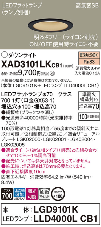 Panasonic ¥À¥¦¥ó¥é¥¤¥È XAD3101LKCB1