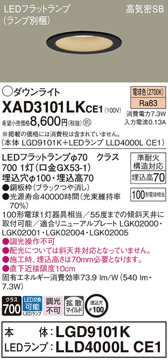 Panasonic ¥À¥¦¥ó¥é¥¤¥È XAD3101LKCE1