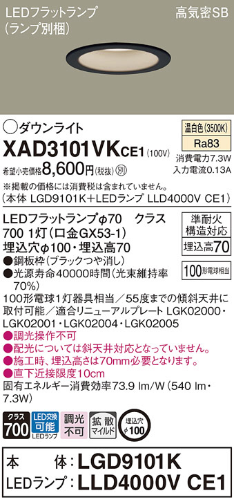 Panasonic ¥À¥¦¥ó¥é¥¤¥È XAD3101VKCE1