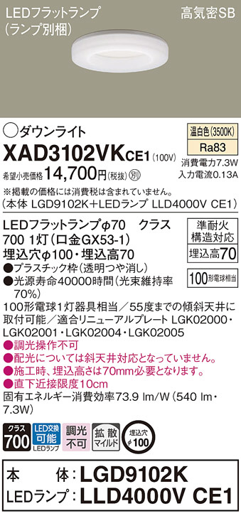 Panasonic ¥À¥¦¥ó¥é¥¤¥È XAD3102VKCE1