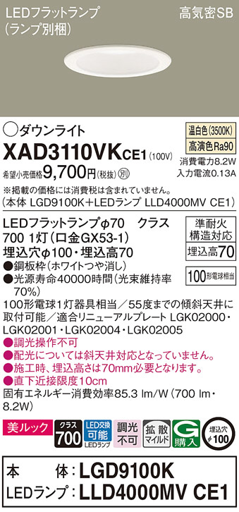 Panasonic ¥À¥¦¥ó¥é¥¤¥È XAD3110VKCE1