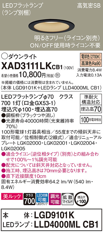 Panasonic ¥À¥¦¥ó¥é¥¤¥È XAD3111LKCB1