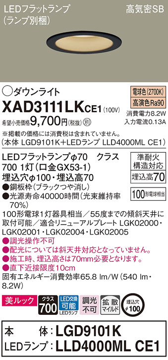 Panasonic ¥À¥¦¥ó¥é¥¤¥È XAD3111LKCE1