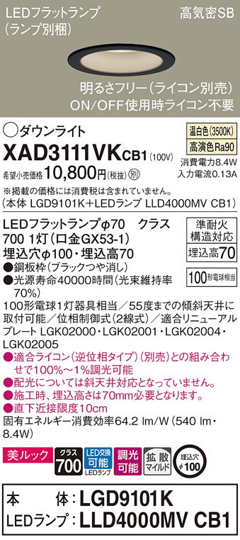Panasonic ¥À¥¦¥ó¥é¥¤¥È XAD3111VKCB1