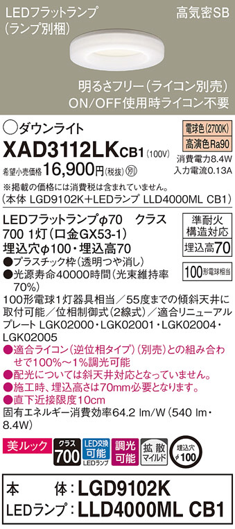 Panasonic ¥À¥¦¥ó¥é¥¤¥È XAD3112LKCB1