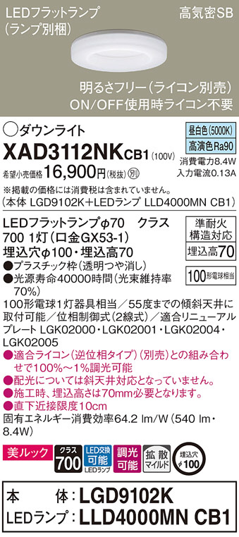 Panasonic ¥À¥¦¥ó¥é¥¤¥È XAD3112NKCB1
