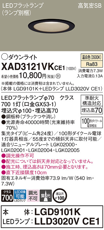 Panasonic ¥À¥¦¥ó¥é¥¤¥È XAD3121VKCE1