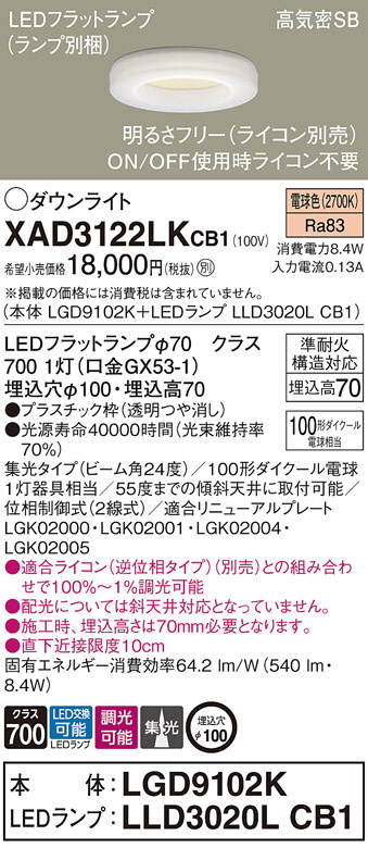 Panasonic ¥À¥¦¥ó¥é¥¤¥È XAD3122LKCB1