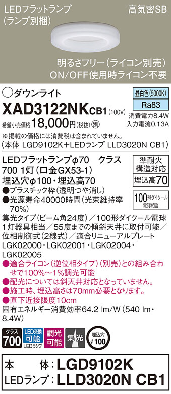 Panasonic ¥À¥¦¥ó¥é¥¤¥È XAD3122NKCB1