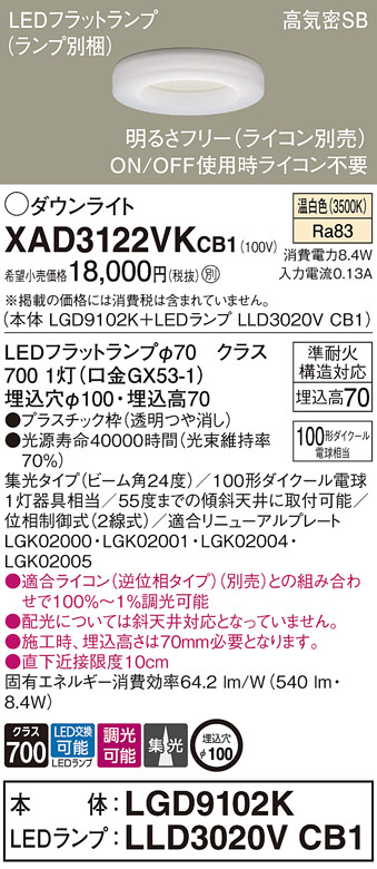 Panasonic ¥À¥¦¥ó¥é¥¤¥È XAD3122VKCB1