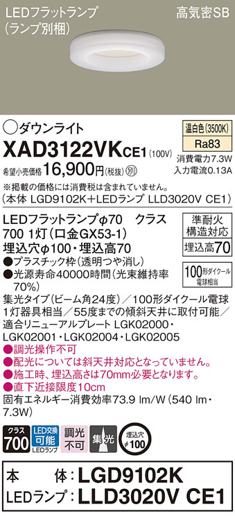 Panasonic ¥À¥¦¥ó¥é¥¤¥È XAD3122VKCE1