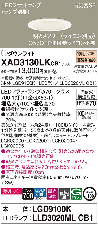 Panasonic ¥À¥¦¥ó¥é¥¤¥È XAD3130LKCB1