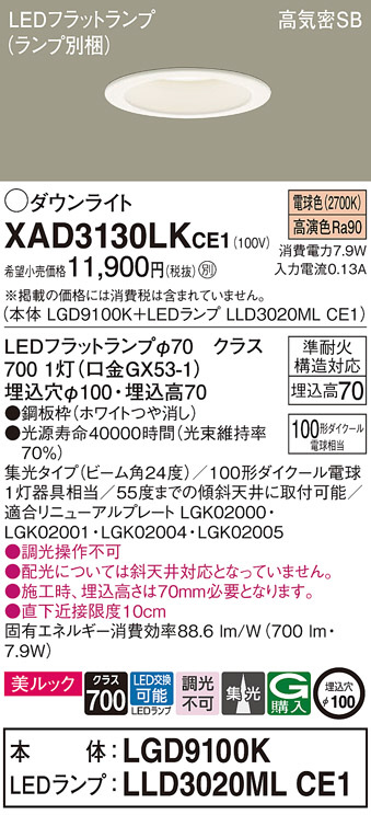 Panasonic ¥À¥¦¥ó¥é¥¤¥È XAD3130LKCE1