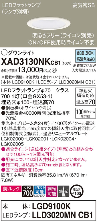 Panasonic ¥À¥¦¥ó¥é¥¤¥È XAD3130NKCB1