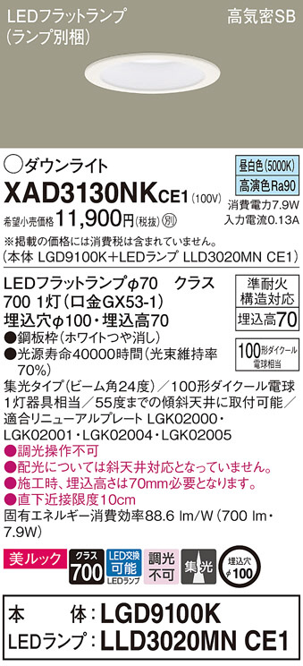 Panasonic ¥À¥¦¥ó¥é¥¤¥È XAD3130NKCE1