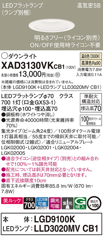 Panasonic ¥À¥¦¥ó¥é¥¤¥È XAD3130VKCB1