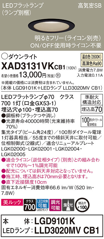 Panasonic ¥À¥¦¥ó¥é¥¤¥È XAD3131VKCB1