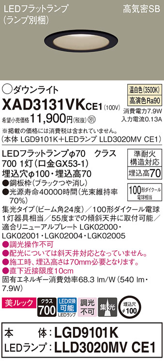 Panasonic ¥À¥¦¥ó¥é¥¤¥È XAD3131VKCE1