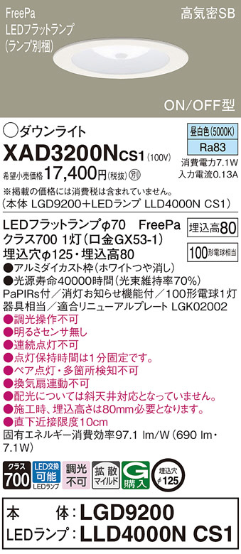 Panasonic ¥À¥¦¥ó¥é¥¤¥È XAD3200NCS1