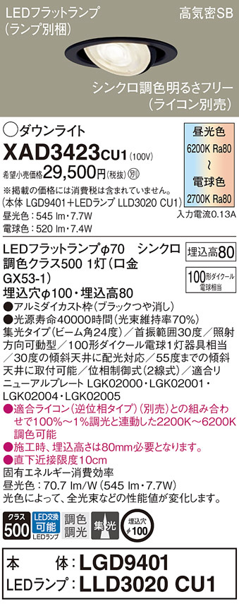 Panasonic ¥À¥¦¥ó¥é¥¤¥È XAD3423CU1
