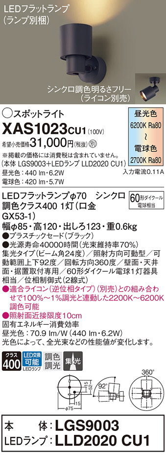 Panasonic ¥¹¥Ý¥Ã¥È¥é¥¤¥È XAS1023CU1