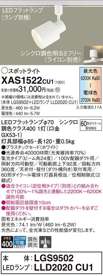 Panasonic ¥¹¥Ý¥Ã¥È¥é¥¤¥È XAS1522CU1