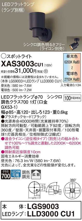 Panasonic ¥¹¥Ý¥Ã¥È¥é¥¤¥È XAS3003CU1