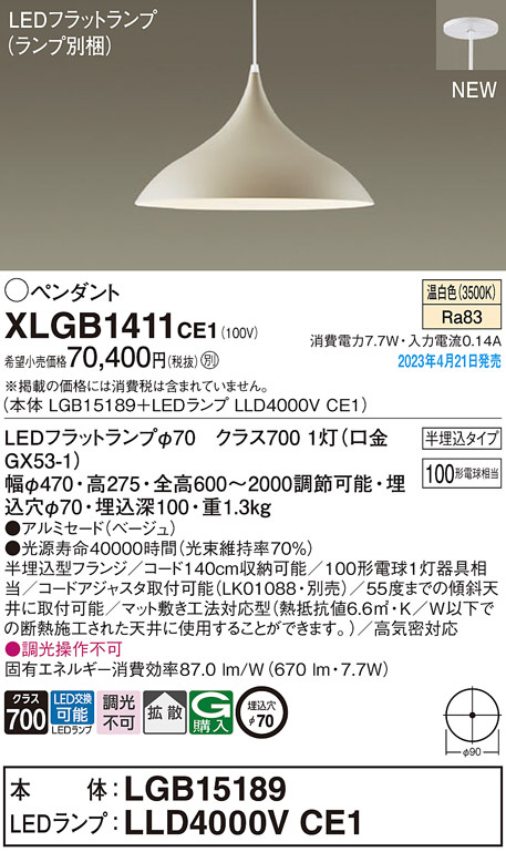 Panasonic ¥Ú¥ó¥À¥ó¥È XLGB1411CE1