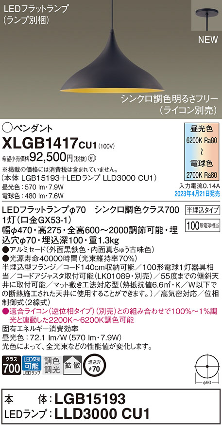 Panasonic ¥Ú¥ó¥À¥ó¥È XLGB1417CU1