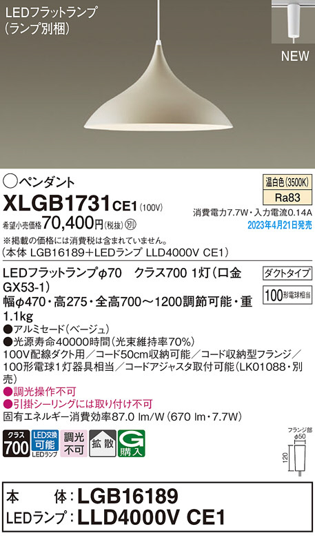 Panasonic ¥Ú¥ó¥À¥ó¥È XLGB1731CE1