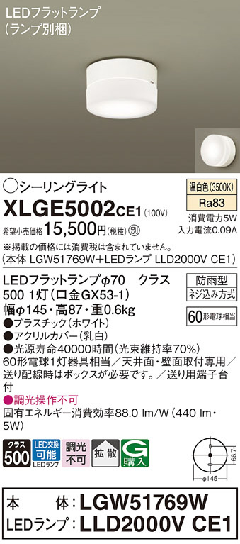 Panasonic ¥¨¥¯¥¹¥Æ¥ê¥¢¥é¥¤¥È XLGE5002CE1
