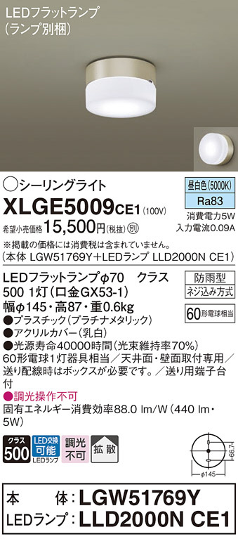 Panasonic ¥¨¥¯¥¹¥Æ¥ê¥¢¥é¥¤¥È XLGE5009CE1