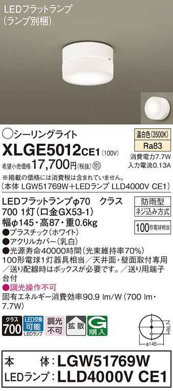 Panasonic ¥¨¥¯¥¹¥Æ¥ê¥¢¥é¥¤¥È XLGE5012CE1