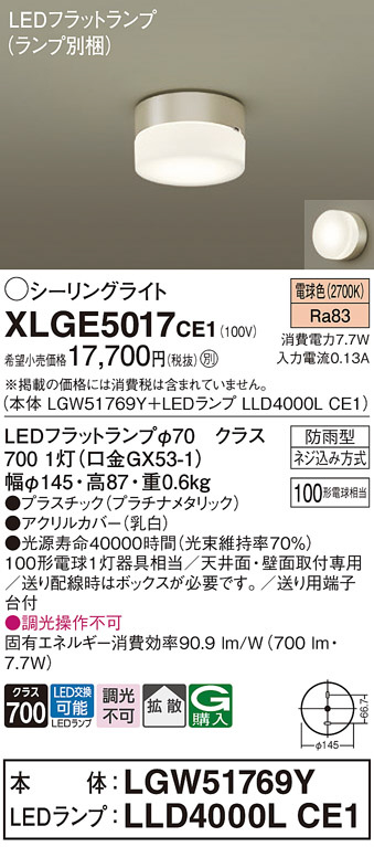 Panasonic ¥¨¥¯¥¹¥Æ¥ê¥¢¥é¥¤¥È XLGE5017CE1