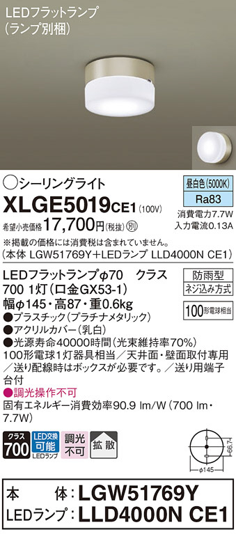 Panasonic ¥¨¥¯¥¹¥Æ¥ê¥¢¥é¥¤¥È XLGE5019CE1