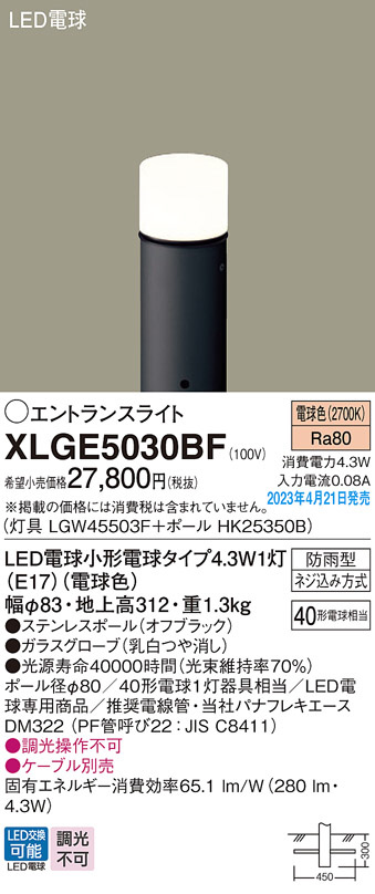 Panasonic ¥¨¥¯¥¹¥Æ¥ê¥¢¥é¥¤¥È XLGE5030BF