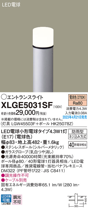 Panasonic ¥¨¥¯¥¹¥Æ¥ê¥¢¥é¥¤¥È XLGE5031SF