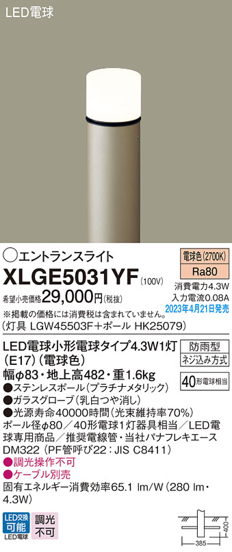 Panasonic ¥¨¥¯¥¹¥Æ¥ê¥¢¥é¥¤¥È XLGE5031YF