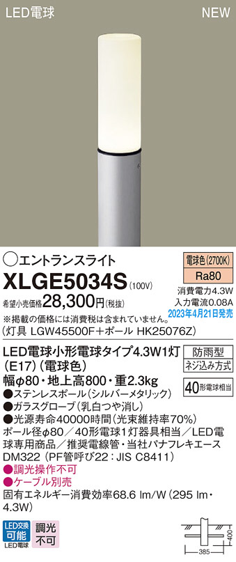 Panasonic ¥¨¥¯¥¹¥Æ¥ê¥¢¥é¥¤¥È XLGE5034S