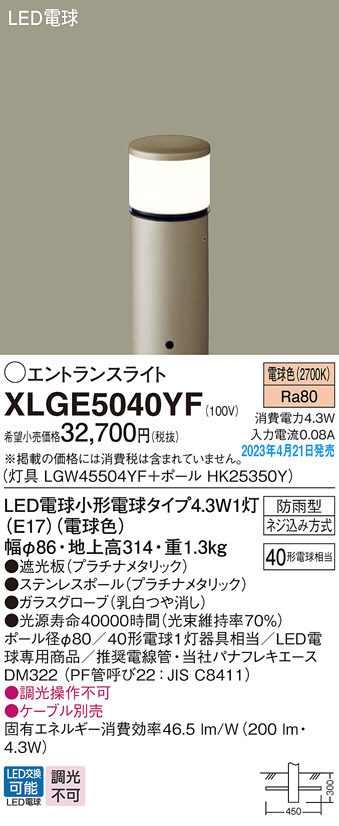 Panasonic ¥¨¥¯¥¹¥Æ¥ê¥¢¥é¥¤¥È XLGE5040YF