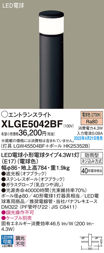 Panasonic ¥¨¥¯¥¹¥Æ¥ê¥¢¥é¥¤¥È XLGE5042BF