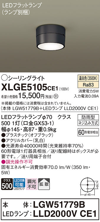 Panasonic ¥¨¥¯¥¹¥Æ¥ê¥¢¥é¥¤¥È XLGE5105CE1