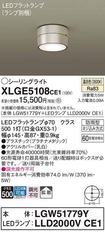 Panasonic ¥¨¥¯¥¹¥Æ¥ê¥¢¥é¥¤¥È XLGE5108CE1